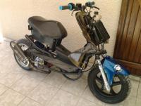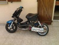 ThomThom Posté(e) le 9 juin 2013 Auteur Signaler Posté(e) le 9 juin 2013 (modifié) Nouvelles de la journée : J'ai eus du liquide de refroidissement hier soir. J'ai directement remplis mon circuit de refroidissement. J'ai fait des essai avec plusieurs réglages sur le gicleur d'origine 92 du 21, pas assez d'essence qui arrive. Ducoup Demain je vais aller acheter des gicleurs (95/98/100). Puis il m'est arrivé que j'ai casser ma cuve , en la remontant avec une mini visseuse . J'ai entendu krrr krrrr. Quel con je suis ... :D2, ducoup demain j'irai aussi racheté aussi une cuve ! -_- (Transparente si y a). Je voulais essayer un gicleur de 102 que j'avais , le pire c'est que le gicleur passer même pas ! (diamètre du filetage du carburateur trop petit..) Puis après le test du Nitro, un moment mon tablier a failli voler :D2 (j'avais fixer juste la vis centrale et pas en bas de chaque coté). Finalement j'ai décider de mettre mon tablier et ma trappe moteur dans un carton au chaud, dans ma chambre ^^. Une fois que j'aurai tous les carénages, je remonterais tout en une fois ! Puis pour les réglages c'est mieux :). En fouillant dans mes cartons de pièces , j'ai retrouver un moyeu de nitro ! :D Plus qu'à trouver un frein arrière complet Nitro (mc/levier/durites étrier), pour la patte d'étrier je la commanderai sur scoot fast. Vidéooo vidéoooo :ouf: Bientôt , très vite ! :) Modifié le 9 juin 2013 par Oo-Thom-oO 1