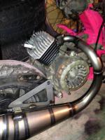 tomMpower Posté(e) le 11 janvier 2015 Signaler Posté(e) le 11 janvier 2015 Oui, la commande est arrivée dans la semaine. :) J'ai pas donné de nouvelles, mais j'ai bien avancé depuis vendredi, j'ai pas eu le temps de poster, donc je profite du dimanche pour vous faire un petit point. Donc la réception des marchandises vendredi soir :000.jpg001.jpg J'ai commencé par démonter l'ancienne admission, donc d'origine, il n'y a qu'un clapet si on peut dire ça comme ça :003.jpg002.jpg004.jpg10922558_10205636080921282_1878717141871303878_n.jpg Puis montage de l'admission Big Valve Stage6 : 007.jpg008.jpg009.jpg10.jpg011.jpg Avec l'admission, il est fournit deux pièces comme ça, vous savez à quoi ça sert ?006.jpg J'enchaine avec le montage du kit Motorforce 70cc en fonte, Je commence par mettre les segments sur le piston et je vérifie que l'axe passe bien dans la nouvelle cage à aiguille Doppler en 12*15*15 :012.jpg013.jpg C'est donc là, que ça commence à devenir du grand n'importe quoi, une fois la cage à aiguille posée dans la bielle, impossible de glisser normalement l'axe dedans, ça force. J'insiste, je m'énerve, je finis par passer un coup de toile sur l'axe pendant 30 minutes en essayant régulièrement, ca m'a énervé, j'ai finis par tapoter fort sur l'axe pour le rentrer, et une fois rentré, je prends du recul et j'ai l'impression qu'il est pas centré et impossible de le bouger de droite à gauche. Bingo... :014.jpg015.jpg Du coup,je démonte tout, je remets l'ancienne cage à aiguille avec laquelle ça force moins et du coup ça se passe mieux et je monte le cylindre :016.jpg017.jpg Je pensais être sortis du pétrin, je pose la culasse, je resserre et là, tout serré à fond, il y a 1mm entre le cylindre et la culasse quand je tire dessus. Je redémonte et mets des rondelles sous les goujons puis c'était bon :018.jpg019.jpg020.jpg021.jpg Ensuite j'ai assemblé le correcteur de couple et l'embrayage Malossi Delta Clutch, j'ai dû mettre le ressort de poussée d'origine, Maxiscoot s'est planté dans la commande, j'ai reçu un ressorte Stage6 Strong au lieu du Hard... :022.jpg023.jpg023.jpg024.jpg025.jpg Histoire de compéter la transmission, j'ai posé le variateur Stage6 Sport Pro, avec des galets de 10grammes (ceux fournis), je devrais sûrement en commander d'autres mais j'ai préféré attendre afin de me donner une idée :026.jpg027.jpg028.jpg029.jpg030.jpg Ensuite la joue fixe de Ludix, beaucoup plus légère comparée à l'origine. Carter prêt à être refermé :026.jpg027.jpg028.jpg029.jpg030.jpg J'ai enchainé avec le remontage du bloc moteur sur le cadre. Avec l'installation de l'amortisseur de Ludix :035.jpg036.jpg Mise en place du réservoir et du nouveau robinet, j'en ai chié à l'installer, c'était pas le bon diamètre et de chance, ça passe tout juste au niveau du cadre :037.jpg038.jpg Voilà, c'est tout pour le moment. J'ai encore pleins de chose à vous raconter mais là ça fait déjà un beau pavé, je vous donne la suite quand j'aurais de nouveau un peu de temps devant moi. ^^ sava watter :ouf: :cool: