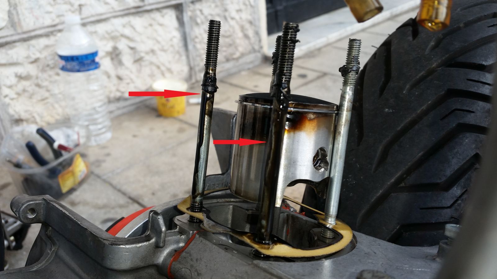Leesion Posté(e) le 29 novembre 2015 Auteur Signaler Posté(e) le 29 novembre 2015 Salut a tous Tout d'abord je vais publier mon article en 3 fois car il y aura 20 photos. Le but est de comprendre pourquoi du gras noir sort de des écrous de mes goujons de culasse (ici ce sera les deux a la sortie d'échappement) voilà comment j'ai calé mon scooter pour pas trop galérer. Ici je viens de retirer les écrous. La je lève tout le cylindre avec la culasse et je vois du noir sur 2 goujons alors qu'ils sont bien serré. De l'autre coté Ca ne peut pas fuir de la culasse car elle est collée au cylindre a cause de la patte a joint. Cylindre retourné Les 2 goujons avec du gras. CE N'EST PAS FINI