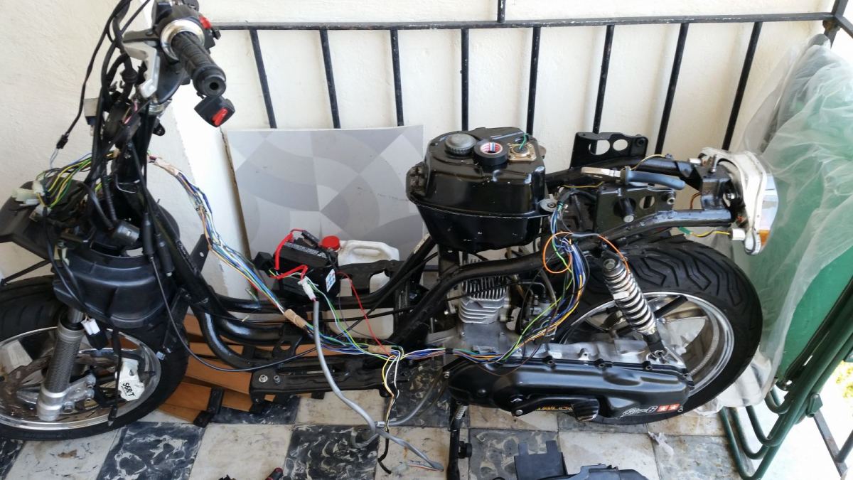 Leesion Posté(e) le 1 novembre 2016 Auteur Signaler Posté(e) le 1 novembre 2016 Salut a tous. Je refais petit a petit mon scooter. Niveau moteur j'ai un carter 2013 que j'ai récupéré mais le cylindre d'origine était mort donc j'ai été contraint de mettre ce que j'avais sous la mains : cylindre athena 70 sport. Le vilebrequin est d'origine et n'a aucun jeu donc ça tiendra. J'ai installé le démarreur électrique. En ce moment je suis concentré sur le faisceau électrique. J'incruste les fils de l'alarme dans mon nouveau faisceau 2013 et j'ai ajouté une cosse dans le coffre avec une borne + après contact et une borne masse. On sait jamais si je veux installer des leds. J'aimerai mettre les warnings sur mon scooter. Je sais comment mis prendre niveau branchement mais je sais pas si mon relais clignotant va suivre vu qu'il n'est pas conçu pour. @JSP SCOOTER (tom67) @Alain @GoProto 13 __________________________________________________________________________________________________ Place au photos Faisceau a nu __________________________________________________________________________________________________ Etape 1 pour raccorder un fils proprement . __________________________________________________________________________________________________ Etape 2 on met de l’étain sur le fil. Je n'est pas de fer a souder j'ai utiliser un briquet chalumeau. __________________________________________________________________________________________________ Etape 3 on ajoute l'autre fil et on pince pour aplatir l'étain fondu __________________________________________________________________________________________________ Ici j'ai rajouté des portes fusibles a chaque câble de clignotant. Pourquoi : J'ai connecté l'alarme au clignotant aussi pour avoir un signal lumineux également. Mais un jour des voleurs intelligent on grillé le fusible de l'alarme. Ils ont tout simplement court circuité les clignotants et activé l'alarme. Résultat le fusible de l'alarme a grillé donc mon alarme c'est désactivé car elle n'était plus alimenté. Dans les portes fusibles des clignotants je vais mettre des fusibles a Ampérage inférieur que le fusible général de l'alarme. Espérons que ça marche dans la logique oui. __________________________________________________________________________________________________ Ici c'est le coupe circuit de l'alarme. C'est cencé couper l'alimentation du cdi quand j'ai activer mon alarme et que quelqu'un me fait la boule. Mais ca ne marche pas vraiment. Par exemple quand j'ai activer l'alarme et que j'ai mis sois le neiman sur "ON" (ou que j'ai mis le + permanent sur le + après contact) il se passe que mon fusible du faisceau grille et bien sur mon alarme sonne(pas le fusible de l'alarme qui n'a rien avoir donc l'alarme est toujours alimenté et elle fonctionne encore). Va savoir pourquoi??? __________________________________________________________________________________________________ Ici j'ai utiliser une chambre a air usagé pour gainer un câble. J'enroule le tout de scootch après.__________________________________________________________________________________________________On continu le scootch__________________________________________________________________________________________________Et encore 1