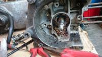 chagre Posté(e) le 1 juillet 2015 Auteur Signaler Posté(e) le 1 juillet 2015 (modifié) Yep a tous! ca avance doucement! pour le moment je suis bloqué, je vais aller cet après midi acheter une pince a circlip (car le deuxieme coté allumage est impossible a enlever avec cette bonne vielle technique des ptits tournevis plat) et un decapeur thermique pour decoller les carters! pour le moment, j'ai viré, systeme + pompe a huile (qui ne reviendra pas par ailleurs), le démarreur et mis un ptit coup de propre! le jeu dans le roulement coté allumage est limite d'1 mm, effarant! quelques photos histoire d'imager le sujet :) tchuss! edit : niveau bielle de vilebrequin, vous êtes plutot origine ou 85mm? Modifié le 1 juillet 2015 par chagre