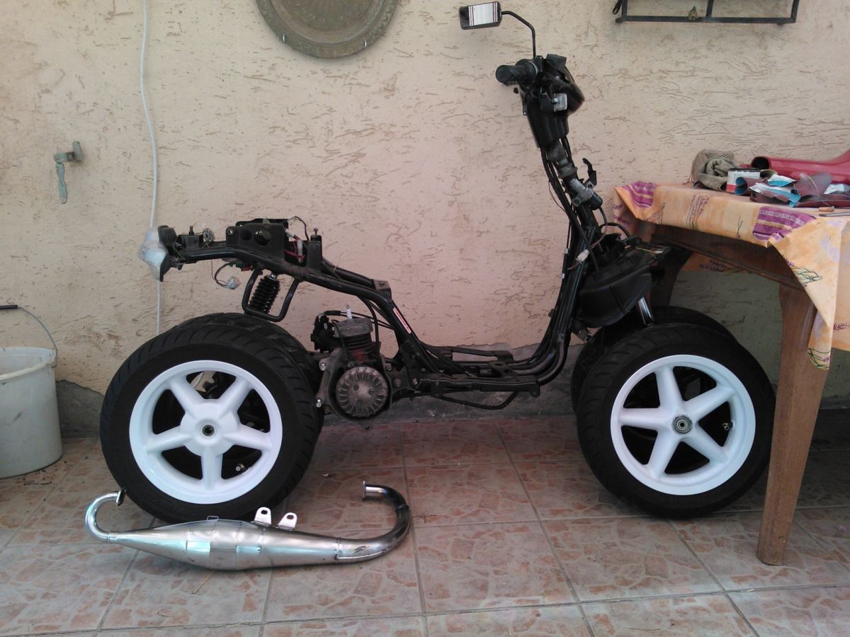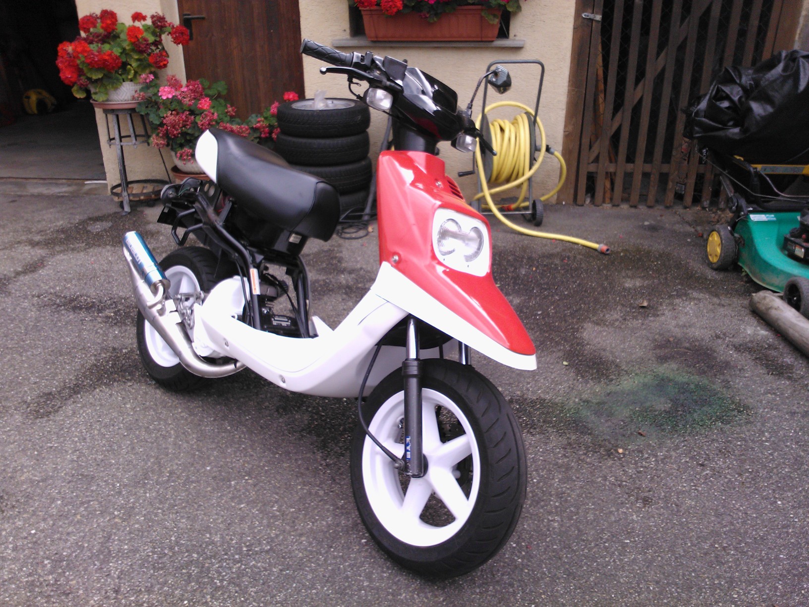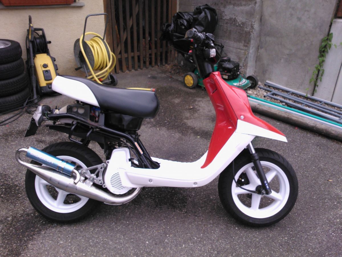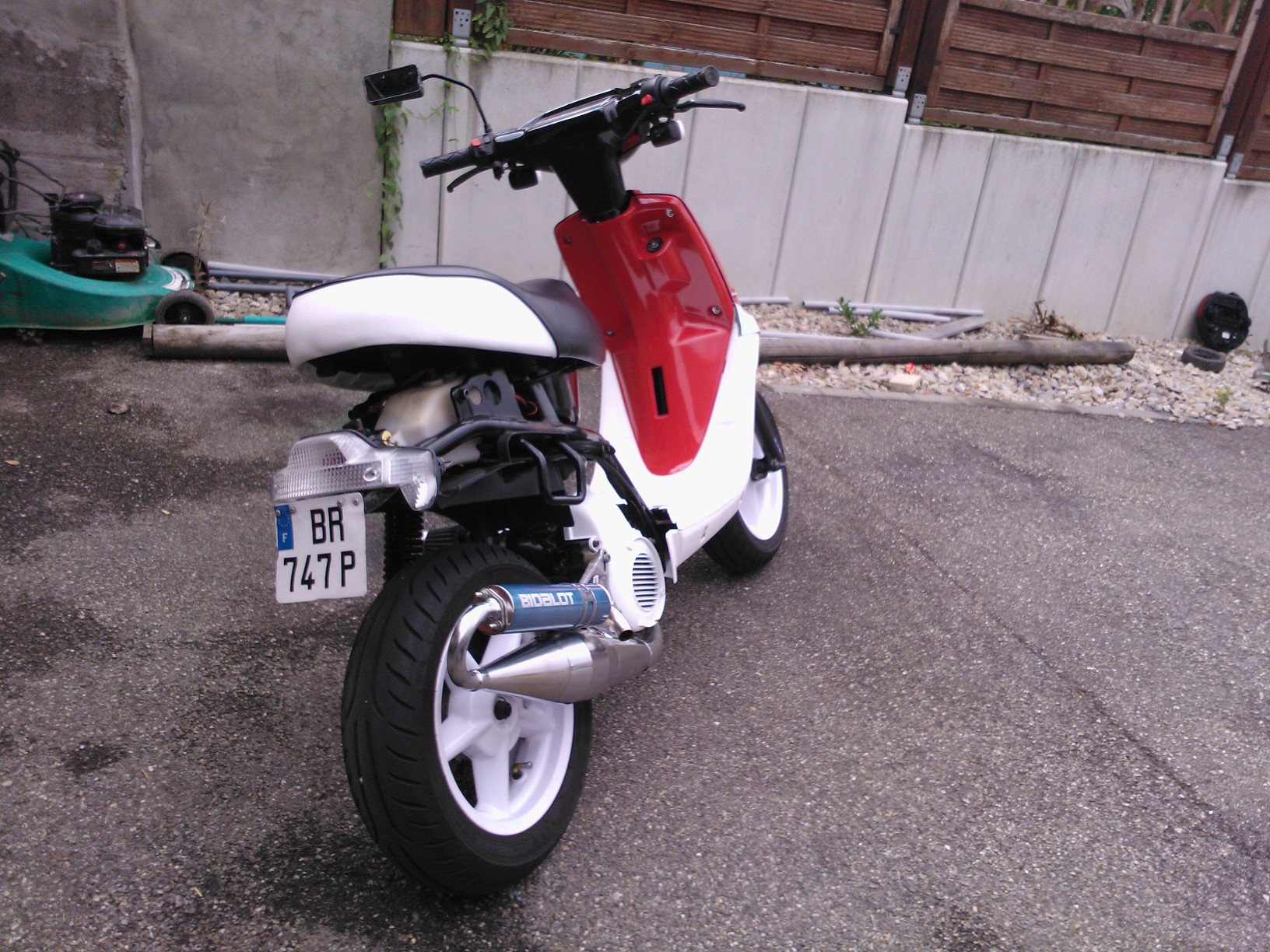 biry Posté(e) le 5 août 2015 Signaler Posté(e) le 5 août 2015 (modifié) Bonjour, je vous présente mon scooter MBK Booster spirit de 1998. Mon passe temps étant de touché un peu à la mécanique (même si je suis pas trop doué ) je me suis lancé sur ce scooter acheté "en l'état" et ne fonctionnait donc pas à l'achat.Je partage donc sa restauration avec vous petit à petit, et vous demanderais certainement des conseils!Le voici à l'achat: Commencement par un nettoyage en gros, puis désossage: restauration du pot (dommage qu'il n'a pas été entretenu) les grosses parties de rouilles ce sont déja incrusté dans le métal. Gros nettoyage/dégraissage du carter ( je crois même que je l'ai allégé en faisant sa lol, pour dire on ne voyait plus le carter au niveau de la roue )remplacement du variateur pour un malossi multivar, et de l'embrayage pour un hebo, avec ressort de poussée malossi blanc. Courroie top perf renforcé kevlar. changement de jantes (rocket 12" blanche) pneus michelin "pure" bi-gomme, et amortisseur de speedfight (plus long de 2.5cm environ et plus mastoque) Remplacement du cylindre pour un kit malossi fonte 50cc, clapet malossi carbone, carburateur 17,5 (je n'ai pas penser a prendre de photos lors du démontage...) à ma surprise en remplacent le piston j'ai remarqué un vilebrequin malossi MHR et debut de peinture carrosseries, remplacement de la housse de selle. Le voici dans l'état actuel.Il fonctionne mais j'ai du mal au réglage carburateur, j'ai déja demandé conseils, je vais remettre la boîte à air d'origine et retester de le régler. Modifié le 5 août 2015 par biry 2
