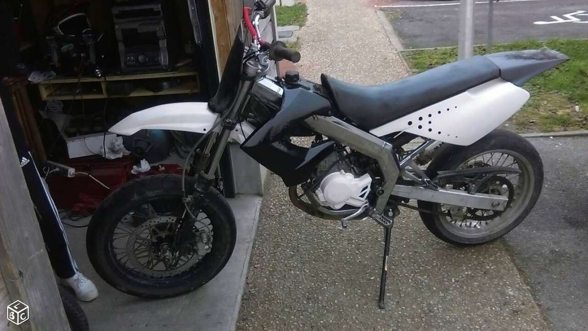Derbiman69 Posté(e) le 17 mars 2016 Signaler Posté(e) le 17 mars 2016 (modifié) Salut a tous ! J'ai décider d'ouvrir ce topic afin de vous montrez l'évolution de ma derbi Photo provenant de l'annonce Pour ce qui est du projet : Vous l'aurez vue dans le titre , c'est une DRD de 2003 , cadre chromé (encore vernis) bras ox alu , bialette suspension a gaz mais fourche de 2007.. Je compte refaire tout l’esthétique et la partie moteur , un truc pour une bonne base quoi full origine bien sur (inutile de mettre un kit pour la revendre derrière) Pour ce qui est des carénages , ça sera des carénages de DRD de 2007 (les plus jolies ) repeint en bleu métallisé au pistolet Guidon ProTaper gris avec mousse bleu Fourche inversée gros diamètre or Jantes bleu métallisé avec disque or étrier avant double piston OR et arrière simple piston or Bras ox lui qui ne sera pas celui sur les photos en gris (Voir Bras Ox du topic sur la replica KTM) , le cadre chromé aussi d'ailleurs (je compte y réutilisé ^^) (Voir Cadre du topic sur la replica KTM) Plaque Phare YZ Blanche Et quelques petits détails sur le moteur et cadre (vis etc) Pot refait de A à Z poli et bleuit , pot yasuni cartouche Bida Bon on verra par la suite je vous mettrais des photos déjà Je n'en ai pas encore la moto arrive demain a la maison Compter sur moi pour faire un travail soigné et propre Modifié le 17 mars 2016 par Derbiman69