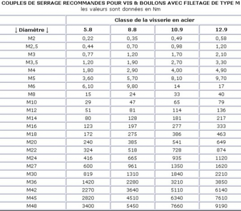 Invité Posté(e) le 25 novembre 2017 Signaler Posté(e) le 25 novembre 2017 Bonjour il y a une heure, guigui34420 a dit : pour les 4 vis de pipe admission , il n'y a pas d'info ? Pour le couple des vis tu peux aussi le faire par rapport au diamètre et la classification