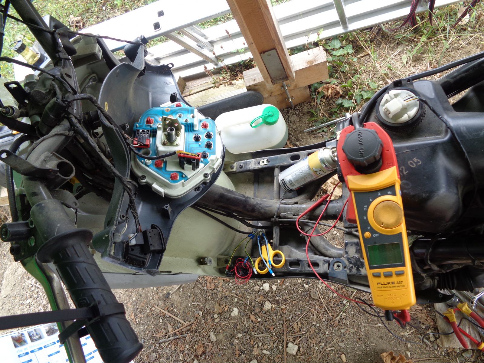 Bonjour, je recherche activement les schémas du faisceau électrique du PIAGGIO Liberty 50cc 4T . Mon concessionaire local n'arrive pas à l'imprimer à partir du livret d'atelier (en fait il faudrait faire plusieurs print écran et assembler les morceaux comme un puzzle) , et j'ai aussi téléphoné à PIAGGIO France qui refuse de les fournir à un particulier. Mon ultime solution repérer les fils en faisant des mesures de continuité à l'ohm mètre et faire moi même le schéma du scooter (comme le montre la photo, il reste pas mal de boulot). Mais si quelqu'un possède ce schéma, se serai sympathique de le mettre en ligne .