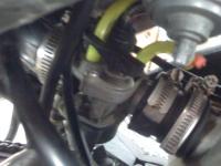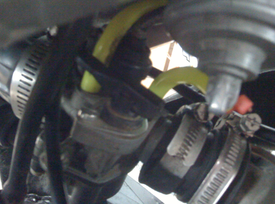 La durite où coule l'essence, sur le gros truc le plus près de l'entrée d'air. Celle de dépression, sur le truc qui est derrière Sur le côté, l'huile ;)