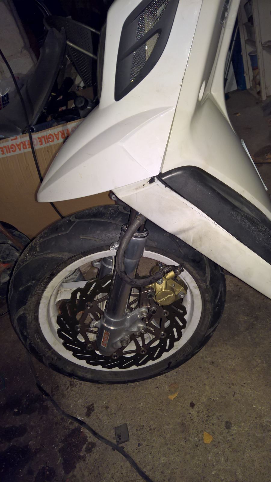 nathan 2917 Posté(e) le 12 avril 2017 Signaler Posté(e) le 12 avril 2017 il y a une heure, Warrick a dit : il me parait un peu grand comme disque et est-ce qu'il s'adapte sur le gros étrier Stage6 http://www.maxiscoot.com/stage6-étrier-de-frein-avant-4-pistons-s6-1400375-ha.html et quelle différence il y a entre celui-ci: http://www.maxiscoot.com/s6-1400380-bk.html et celui d'origine en Brembo ? Pour te répondre S1626 le côté gauche des carénages est griffé et il manque le sitcker de droite sur la face avant franchement j en sais rien de la dif... oui il va sur tous les disques
