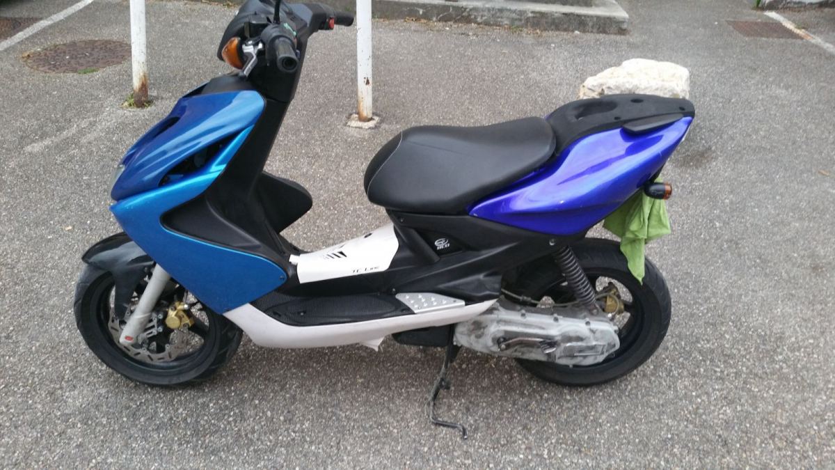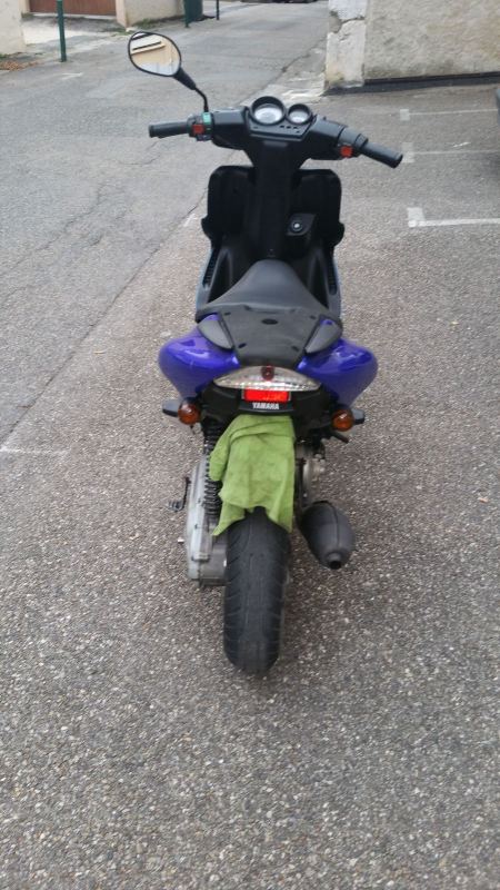 Warrick Posté(e) le 31 mai 2017 Auteur Signaler Posté(e) le 31 mai 2017 Bon des news normalement si tout se passe bien mon ancien Aerox part du côté d'Albertville chez son nouveau propriétaire en espérant que ce soit pas un faux plan. Je voulais échanger les fourche et le freinage entre mon Aerox bleu et le jaune mais pas envie de me prendre la tête à tout changer.Je mets quelques photos de mon ancien Aerox bleu, j'ai remis les cabochons des clignotants d'origine, échanger le pot Big One de l'Aerox jaune avec le bleu virer la trappe batterie en métal blanc et remis celle d'origine et refixer la plaque d'immat'. Je sais le carter est pas terrible mais bon j'en donne un autre avec Voilà pour les news