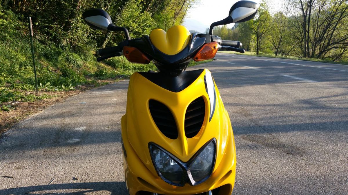 Warrick Posté(e) le 11 mai 2017 Auteur Signaler Posté(e) le 11 mai 2017 Voici des news du scoot J'ai fait un échange entre l'embrayage Artek K2 de mon ancien Aerox bleu sur le jaune pour voir j'ai un peu plus de vitesse max sans plus 80km/h donc je je l'ai remis sur le bleu. J'ai maté la configuration donc c'est bien un carburateur d'origine 12 je pense pas sur, variateur d'origine je vais démonter demain sil le temps le permets pour voir la tête des galets. j'essaierais aussi de régler le souci d'air qui passe entre le pot et le cylindre, au pire je remets le pot Big One en attendant mieux. Je vais refaire mon pot Polini Team 3 dont la cartouche se barrait, le pot est sablé manque plus qu'a passer plusieurs couche de peinture HT et pour la cartouche je mettrais des photos demain. Ce matin j'ai enfin trouvé une nouvelle cartouche pour le Polini j'en dit pas plus. Pour la nouvelle configuration j'hésite à dépouiller mon Aerox bleu et de son Kit 70 Top Perfs, du variateur Polini, du carburateur 17.5 de l'embrayage Artek K2 et mettre à la place les pièces d'origine du jaune et le vendre remis d'origine. Vous en pensez quoi ? Pour le freinage je vais attendre mais je craquerais bien sur un kit gros freins pour l'avant avec gros étrier et gros disque aucuns de mes pros autour de chez moi sont capable de me commander un kit gros freinage. Et demain normalement je vois mon frère il doit me ramener un carton avec des pièces qui trainait chez mes parents je mettrais des photos et un gros tri se feras pour voir ce que je garde et ce que je revends. Les photos arrivent un peu de patience 1