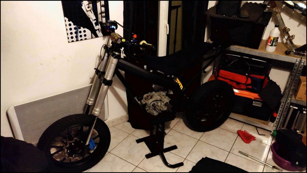 Tampaxxxxx Posté(e) le 11 septembre 2017 Auteur Signaler Posté(e) le 11 septembre 2017 Alors voilà les new de cette journée pas très productive mais bon c'est déjà ça. après avoir chercher comment fixé les radiateurs et sans trouvée mon bonheur même en Suisse... Je me suis arrêter sur des entretoises avec deux filetage mâles en 8, je vais donc calculer la position en sachant que j'ai 2,5 cm d’épaisseur ça correspond a l’espacement d'origine du radiateur. je vais acheter un kit de taraud dans la semaine et ça serra un gros truc en moins. Réception de mon lève moto et de mon coupe circuit guidon, clairement plus sympa pour bouger la moto. :') il y a 7 heures, jona67 a dit : Tu nous fais encore découvrir des pièces Au moins je peux prendre exemple sur la tienne vu que la mienne sera aussi pour piste En parlant de piste tu sais si il faut aussi freiner je ne sais combien de vis avec le fil ? Alors il me semble pas que ce sois obligatoire sur les pistes ou je vais allez, après si besoin à faire c'est assez simple, une dremel petite mèche et c'est régler ensuite tu câble t'es vis. Je le ferrait si besoin ou des goupille aussi suivant l'endroit. Renseigne toi sur les pistes ou tu veux tournée et les réglementation des compétitions ou tu vas pour savoir la mise a niveau de ta moto. Exemple sur ma piste principal je suis obliger de respecter une sonorité du véhicule de 100db. Protection de plusieurs endroit de la moto pour que en cas de chute je n’abîme pas la piste. Moto 100% étanche, tapis environnemental, équipement pilote etc etc