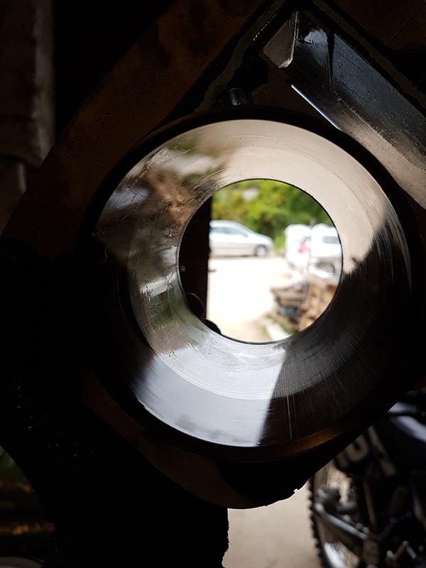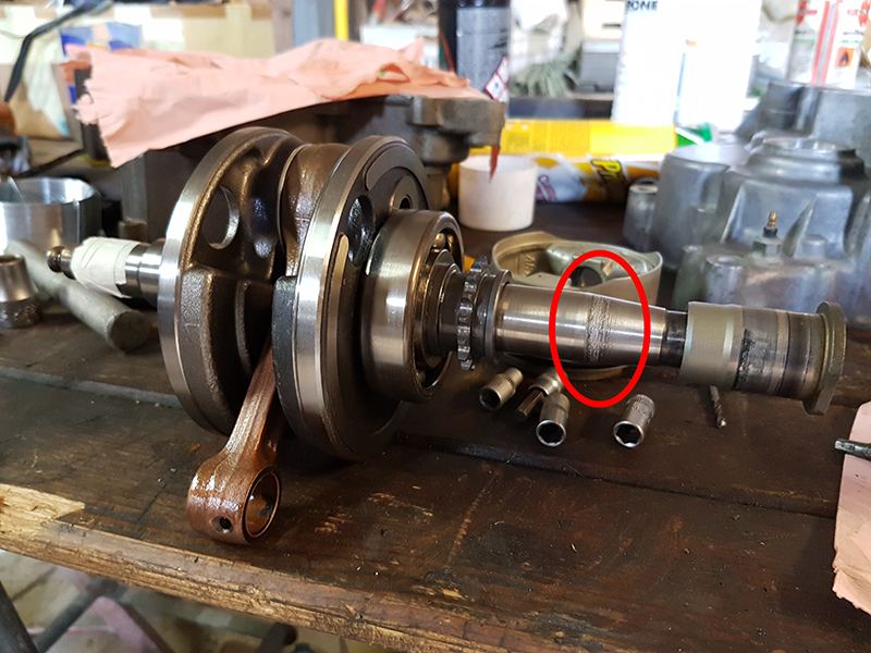 mat881 Posté(e) le 19 août 2017 Auteur Signaler Posté(e) le 19 août 2017 il y a 8 heures, Barry/Sheene a dit : Envoie les photos je suis curieux. Tu as penser à un polissage des conduits admission échappement. Surtout à l’échappement oui parce que y a une belle couche de calamine, ça va être galère c'est vraiment pas accessible Je vous fais part de la suite Donc après avoir retiré cylindre, culasse, allumage et distribution on remarque un petit soucis : la soie du vilebrequin est un peu usé. Comme si le volant d'allumage c'était soudé, parqu'on à forcé à mort pour le sortir avec l'extracteur, quand je dis à mort c'est 70 kg sur une clé de 30cm... on s'y est repris à plusieurs fois de peur d’abîmer le vilebrequin ! Il a fini par ce décoller mais c'était pas gagné ! Mais le vrai soucis ce trouve ailleurs, en faisant tourner le vilebrequin, on remarque à l’œil nu que la soie coté allumage n'est pas centré, comme si elle était tordu... grosse douche froide parqu'un vilebrequin de ce type c'est plus de 400€ Pour mieux ce rendre compte du soucis, le père d'un pote qui touche en mécanique décide de le passer au comparateur. Le vilebrequin est bien décentré et pas qu'un peu : 0.5mm au bout de la soie, c'est énorme. Le pire c'est qu'on ne c'est pas comment il a pu ce décentrer... Du coup il décide de ce renseigner pour essayer de le corrigé... et il a réussi en chopant le point le plus haut et en tapant sur les masses du vilebrequin avec un bout de plomb ! Du coup le vilebrequin est bien en dessous des tolérances recommandé, un vilebrequin de sauvé, j'étais heureux Je vous laisse les mesures après correction, on voit sur la droite la tolérance max que préconise Yamaha : J'ai pris une photo de la soupape d'échapppement je vous laisse constater Voilà la culasse très simple, faudra que je m'occupe des conduits avant remontage J'ai passé commande chez Yamaha ce matin soupape, segments, et carénages. Normalement il le reçoive dans la semaine. Bon la pour le moment c'est que la partie moteur mais la plus grosse partie du taff ce trouve sur la partie cycle... affaire à suivre 2