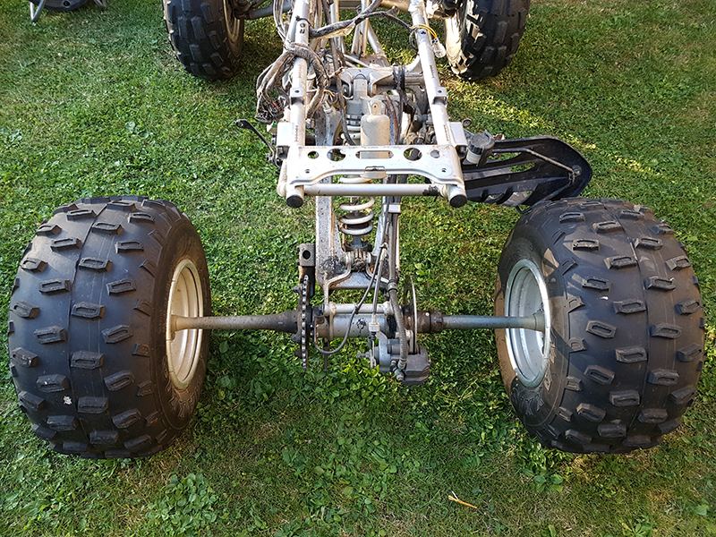 mat881 Posté(e) le 25 août 2017 Auteur Signaler Posté(e) le 25 août 2017 Dac je regarderai ça C'est claire qu'un palmer c'est le top, perso j'en ai pas l'utilité mais le gars qui m'a recentré mon vilebrequin à tous ce qu'il faut, il justement vérifier l'usure de l'axe du piston avec. Nan ta culasse ne fait pas du tout ces km Je vous montre un peu mon avancement sur la partie cycle Donc la partie cycle à 12ans, sur un véhicule tout terrain la partie cycle vieilli très vite encore plus si c'est mal entretenu. Sur mon raptor il y a quelque petit truc à corriger : La peinture noir faite à l'arrache sur les triangles, ça à été peint parceque ça commençais à rouillé sauf que ça fait dégueulasse Jeu énorme sur l'arbre arrière, roulement de moyeu hs Jeu dans les roue avant, roulements de moyeu hs Commodo gauche ou il manque le bouton pour les phares, ce qui fait que ça déconne Quelque début de rouille un peu partout mais la c'est pas dans mes moyen de refaire une peinture du cadre à l'époxy, on oublie Mais surtout un gros nettoyage de toute les pièces Voilà le raptor quasi à poil, ça ressemble à rien Première galère, desserrer l’écrou de l'arbre arrière. Impossible... frein bloqué, calé contre un mur, mon pote de 80kg dessus, grosse clé à molette, rallonge de 1m50, l'ecrou ne bougeait pas d'un poil c'est le quad qui grimpait au mur Obligé de le chauffer à mort et de le blinder de dégrippant pendant toute une nuit. Il a fini par sortir sans soucis Seconde galère, sortir l'axe du moyeu... j'ai tapé sans vous mentir pendant au moins 45min pour le faire sortir tellement c'était grippé ! Résultat les joint spi sont bien éclatés et les roulements complètement défoncés. Ensuite démontage de tous les éléments fixé au cadre ; bras oscillant, biellettes, suspensions et amortisseur, triangles avant, fusées ..etc Le quad quasi vide, reste juste le poste de pilotage et le faisceau Pour mon problème de commodo, vu que le bouton n'est pas vendu en pièce détaché j'ai acheté un commodo sur lbc qui fonctionne qu'a moitié. S'en n'est pas un de 350 à mon avis plus de 250, bref, j'ai réussi à récupérer le bouton ainsi que le support de guidon ce qui fait que j'ai un commodo comme neuf Ensuite j'ai pas mal avancé sur le nettoyage, petit avant/après sur le support de couronne arrière, grâce a la paille de fer fine et l'essence Décapage des triangles supérieur, forcement ça cloque la ou c'est le plus facile le reste ce sera à la main ! Par contre je sais tjrs pas comment je vais me démerder pour les peindre... j'ai vraiment pas envie de le faire ! Voilà voilà, j'ai reçu plusieurs colis cette semaine, encore un demain et je vous montre ça si ça vous intéresse bien-sure