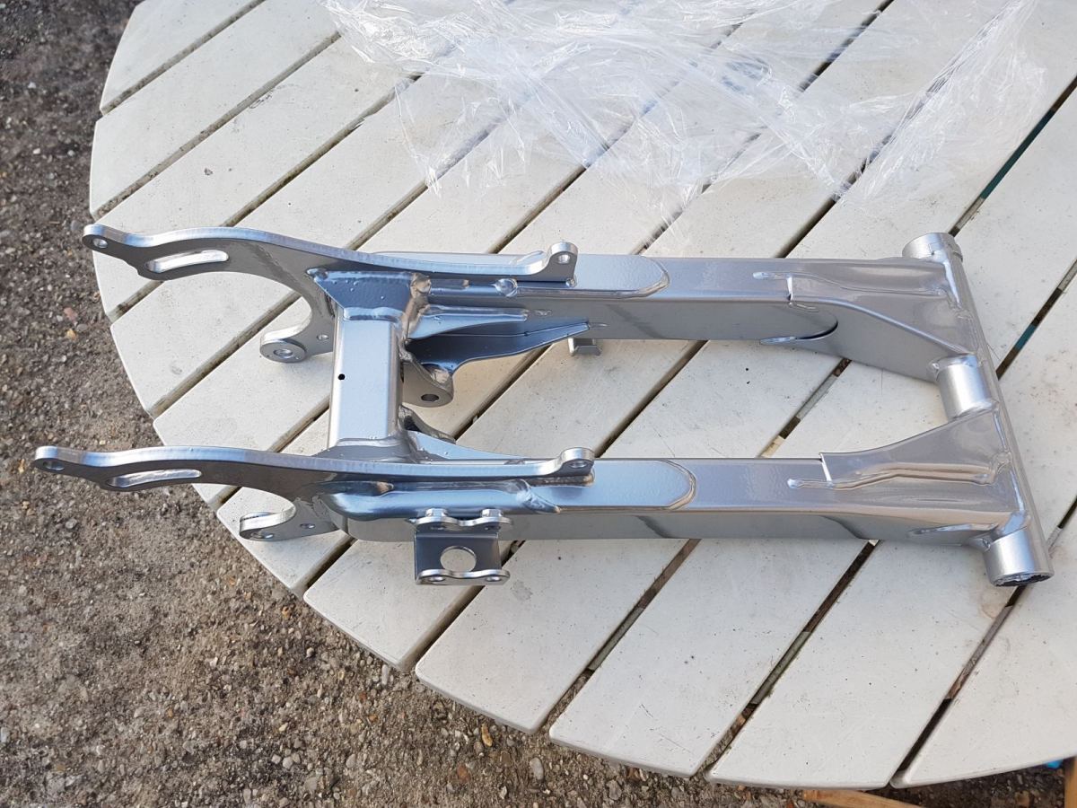 mat881 Posté(e) le 15 novembre 2017 Auteur Signaler Posté(e) le 15 novembre 2017 Salut tout le monde ! Ça y est j'ai récupéré le cadre de peinture cet aprem, le résultat est top. Pour 170€ tout compris en epoxy aucun regret, si j'avais su avant je l'aurais emmener direct après le démontage complet ! J'ai pas tout déballé parce-que je préfère qu'il reste enrubané proprement en attendant le remontage. Je vous laisse les photos du avant/après J'ai avancé sur le nettoyage, j'attaque le remontage demain. j'attends mes joints spi de 123 roulements, d'ici fin de semaine ils arrivent. D'ailleurs j'ai reçu une commande, poignée et mousse de guidon ProGrip 20bal... Je m'en prive pas Affaire à suivre