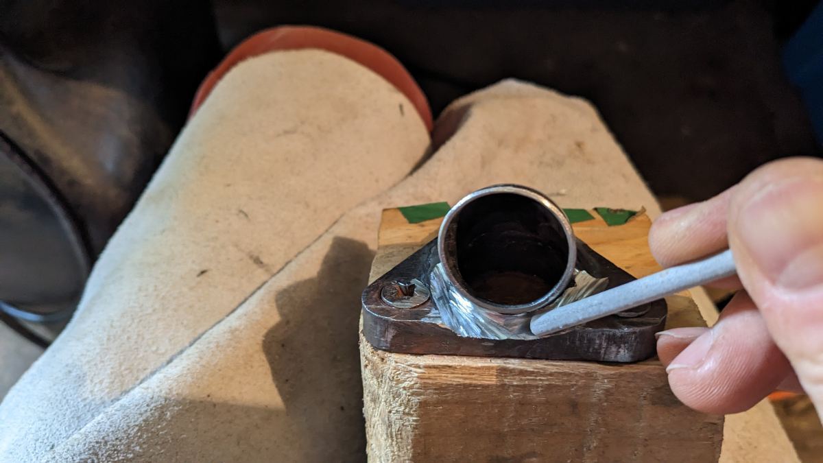 FRJMT Posté(e) le 18 avril 2023 Auteur Signaler Posté(e) le 18 avril 2023 Bon, en prévision de cet été, je me suis lancé sur la soudure de la pipe d'échappement inox... Tout seul, comme un grand ! Je soude à la baguette 2,5 mm en 316L sur des coudes 1,5 mm et tube 1,25 mm en 305L. Poste inverter Parkside réglé entre 65 et 75 A. La bride, elle, est en acier doux, et très sujette à déformation... J'ai dû pas mal m'entraîner avant sur du tube 1,25 au point par point... Chaud de pas passer au travers !!! Je m'entraîne aussi à prendre les bons angles, et à bien dégager la zone de soudure... Ensuite, je peaufine la tubulure pour que tout soit parfaitement en contact... Pour moins passer au travers... Ensuite j'attaque la partie centrale... ce n'est pas très beau, mais c'est bien chargé et ça pénètre beaucoup. Enfin, je soude le tout sur mon châssis en bois. Et voilà le résultat ! Pas très belles les soudures (j'avoue, je suis passé 2x au travers...), mais super costeaudes ! Au trou d'en bas de la bride, ça a pas mal bougé... Pas grave, l'important, c'est d'avoir assez de surface bien plane pour faire l'étanchéité ! Les conduits internes sont nickel, beaucoup mieux que mon tube de lit d'hôpital (RIP)... 1