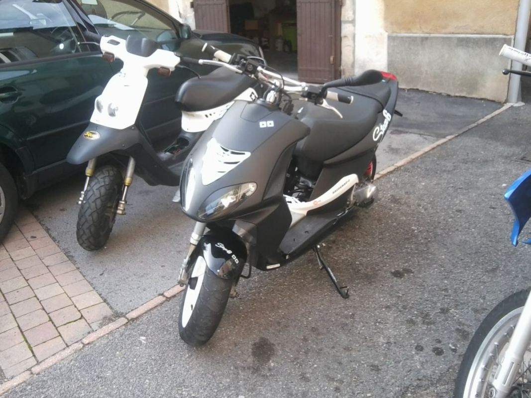 black fighter 07 Posté(e) le 12 juin 2019 Auteur Signaler Posté(e) le 12 juin 2019 Salut à tous, J' ai été fureté sur le web afin de m'informez un peu mieux sur la pose d'un cylindre piapia sur peugeot. Pour mettre en oeuvre tous ça c'est assez simple mis à part l'usinage de la sortie d'eau et le bon jointage pour pas que ça fuit. Pour la cale de bas cylindre je sais que à l'époque sur mon xps j'avais mis un vilebrequin en course et pu acheter un cale spécifique la ci bader peu m'aider à m'en procurer une ou m'expliquer comment la fabriquer c serais vraiment très cool de ta part. Comme je refais souvent des épaves de scoot j'ai déjà eu un Nrg power et avec kit Stage6 et bien il tournais comme un malade. Petite photo j'adorais la face avant de ce scoot d'origine de devant à dérrière il était cool. Dessus était monté kit 70 st6 rt, pot st6 réplica (pot monté lorsque je l'ai racheter) puis r1200, carburateur 28 Dell'Orto boisseau plat pack variation st6 rt etc... Du coup pouvoir monter de bonne pièce piaggo sur un peugeot ce serais un gros bonus perf quoi que la ou je pense que piapia c'est bien mieux c'est pour l'admission. J' ai retailler la barette dans le bas moteur mais je trouve que c'est pas top l'admission latéral, et il est dommage que l'on ne trouve que peux d'info pour améliorer cette partie