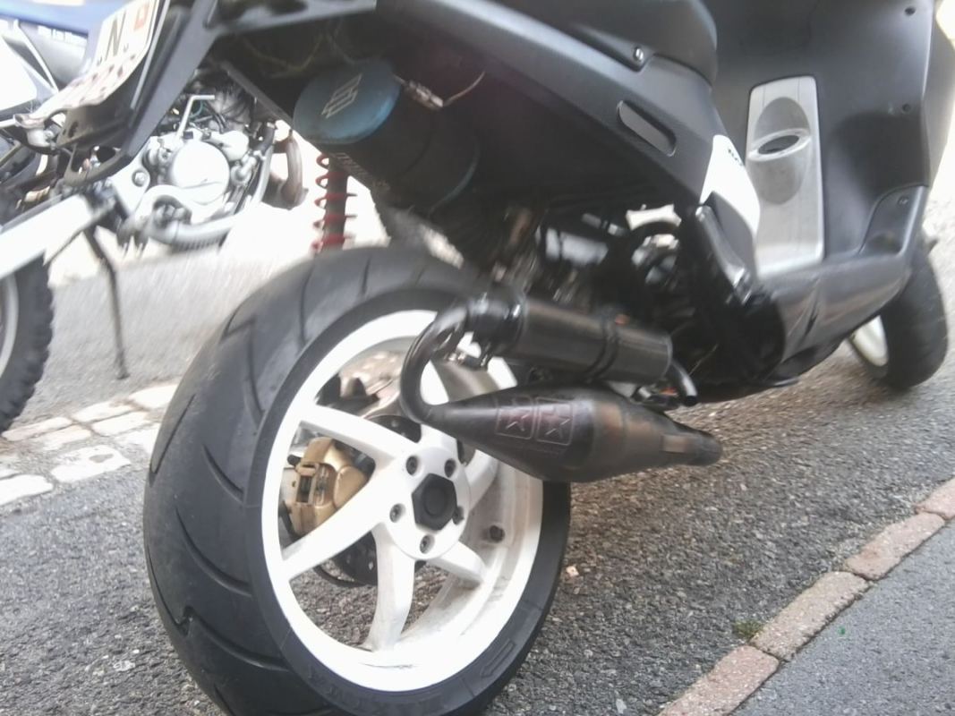 black fighter 07 Posté(e) le 11 juin 2019 Auteur Signaler Posté(e) le 11 juin 2019 Bonjour au vu de nôtre super journée pluvieuse j'ai un peu avancer sur la machine le feux arrière d'origine à été supprimé et la coque est lissé et le garde boue arrière à été enlever lui aussi, la veilleuse du phare avant à été remplacer par une LED xenon 6200 k. Le moteur démarre au quart de tour et le scoot roule très bien, je pensais qu'il allait faire plus de bruit mais en fait malgrés le nouveau cylindre et l'échappement comme je bosse très tôt le matin et que mes voisins me maudisse avec mon 406 coupé groupe n, au moins pour aller bosser l'été ils auront la paix. Bref je me posais une questions un peu ouf, pour le moment mon moteur est en refroidissement à air mais j'ai vu que chez peugeot le moteur vertical existe aussi en liquide la modif est simple une pompe à eau bosch des durites radia et voilà mais la ou je suis pas sur c'est sur le cylindre rentre t il place sans modif ?
