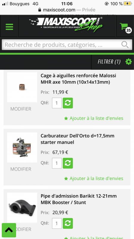 nathan 2917 Posté(e) le 3 mars 2020 Signaler Posté(e) le 3 mars 2020 Prend un 17.5 phva dell orto le cp avec la baa ça merde un peu prend une boîte de gicleur 6mm ça te reviendra moins chère et t’aura tout en kit prend le 70top noir il marche autant que le polini et est moins chère Et prend une cage à aiguille malossi