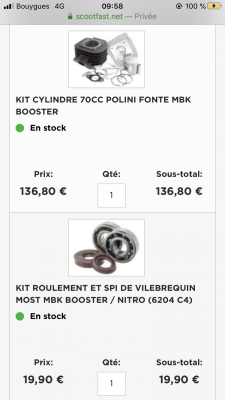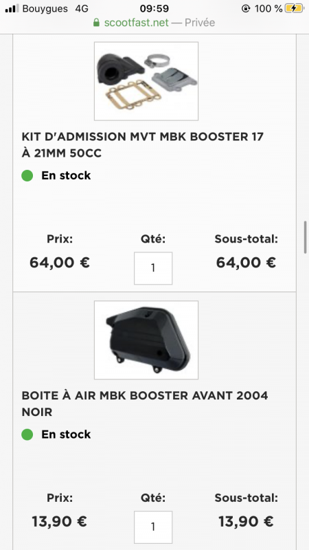 nathan 2917 Posté(e) le 4 mars 2020 Signaler Posté(e) le 4 mars 2020 il y a 24 minutes, syu3x a dit : Nickel désolé c’était pas préciser sur celui de scootfast, je vais prendre ça du coup merci beaucoup, vraiment! Je vais en commander une dans le doute, même si elle est encore bonne elle dois être en fin de vie la mienne Je peux prendre des pièces de marque à la con pour l’admission? Pipe admission y’a pas en « grosse » marque Prend une pipe d’admi barikit si il y a sinon mvt c’est les plus solide sur booster les autres craque vite, renseigne toi avant que ton starter à câble d’origine aille bien sur le 17.5 en boîte à clapets garde ton origine et met les clapets neuf Malossi en carbone ça ira très bien