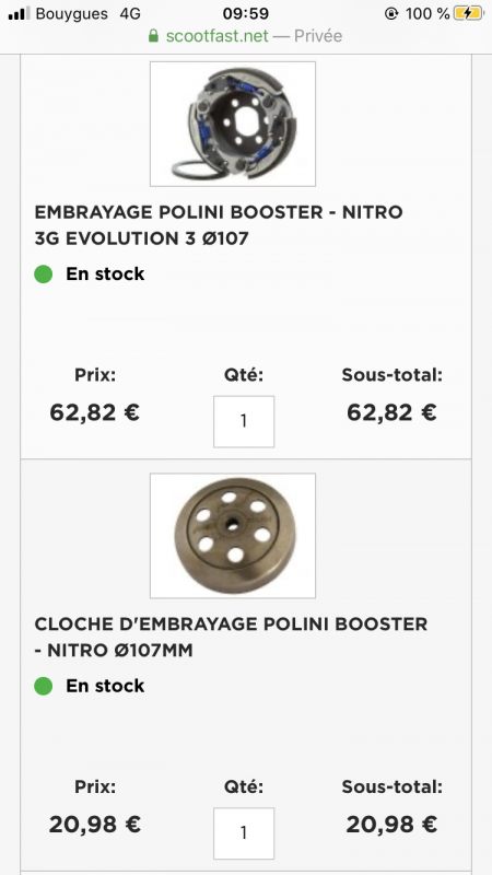 nathan 2917 Posté(e) le 5 mars 2020 Signaler Posté(e) le 5 mars 2020 il y a 24 minutes, syu3x a dit : Ahaha, je vais plutôt prendre la solution de dessous pour une première car j’suis du genre maladroite Parfait, je vais faire ça et on verra plus tard pour un pot (J’suis sur maxiscoot juste pour comparer les prix et les choix) ‘Alors normalement il devrais me manquer uniquement ; les bougies, au moins un rétro et des clignotants à l’avant. (Pour la mâchoire de frein c’est juste pour la compter dans le prix mais je compte prendre une yam) La configuration vous semble complète? Toutes les pièces vont ensembles? Galets et ressort c’est ok? Merci à vous tous pour votre patiente! J’espère vous montrer le résultat le plus vite possible En courroie prend une Malossi les Polini on la fâcheuse tendance à exploser et là ça fait mal... les ressorts jaune que t’a pris sont pour embrayage d’origine donc ne vont pas sur le Polini pour ce qui est de la graisse et de l’huile de transmi et du liquide de frein va dans un magasin de pièce auto ça te coûtera moins chère t’es roulements de transmi sont mort pour que tu veuille les changer ? Tu sais le faire et y’a les outils pour ?