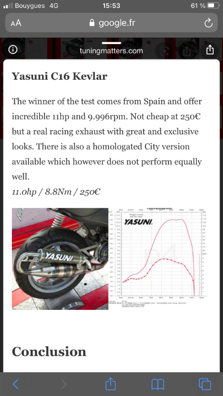 Après ça m'étonne pas que le C16 marche mieux il est pas homologué, je compte partir sur une plus grosse configuration après donc je vais pas investir sur un C16, le Pro Replica était déjà sur le scoot quand je l'ai acheté.