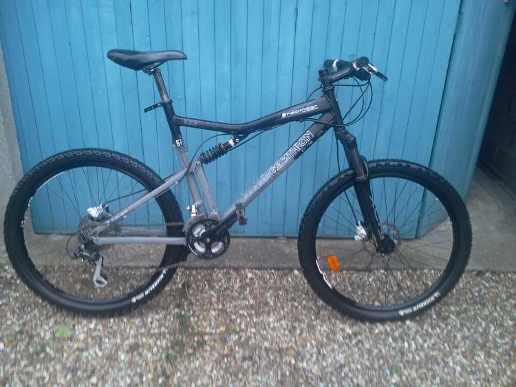 DJOKERX Posté(e) le 25 octobre 2012 Signaler Posté(e) le 25 octobre 2012 (modifié) Hello All :cool: Donc voilà je vous présente ma bête des sentier battu des chemin de forêt :D2 C'est un VTT qui à été refait , mais bon il y a certaine chose à revoir ^^ . Cadre de Rockrider 6.3 alu 27 Vitesses Jante avant EXE , jante arrière Inconnu ^^ Pneu avant Michelin Xc a/t Bon grippe sur les terrains lourd la boue etc.. à condition de pas trop aller chatouiller les flanc , et sur route mouillé il vaut mieux ce méfier , mais pour le reste je n'ai rien à redire . Pneu arrière Michelin Mountain dry 2 , J'en suis déçus il s'use bien trop vite il n'a de l'accroche que sur sol sec , et ne vaut mieux pas tenter les chemin trop rocheux il crève facilement , bon juste pour les petit sentier etc ... à éviter Fourche Suntour XCR magnésium , joint spy hs , rouillé de l'intérieur , bref ... elle est nase vivement que je puisse en monter une autre . Au niveau hand brake , j'ai du shimano bl m445 à l'avant comme à l'arrière , c'est plutôt bien , j'aime beaucoup ^^ Shifters Sram x7 , je ne m'en plein pas :) Disque de 160 mm à l'avant comme à l'arrière. Il faudrait que je trouve un disque plus grand à l'avant ou que je change ma fourche car j'ai que la moitié de mes plaquettes qui touche . Dérailleur arrière shimano alivio , j'ai un problème avec mes vitesse elles ne passent pas toutes à cause de la jante qui ne remonte pas jusqu'en haut , Je ne sais pas si c'est mon dérailleur qui l'empêche :s à voir . Dérailleur avant shimano Pédalier Sr Suntour PFF pas de problème à redire mise appart les pédales que j'ai pas à mon gout je les trouve trop petite (j'ai des grand pieds et assez large ^^) Place à quelque photo :) Voili voilou , il n'est pas superbe mais il me suffit à mon utilisation même si il est un peu limité , j'ai de quoi m'amuser un peu . Modifié le 26 octobre 2012 par DJOKERX 2