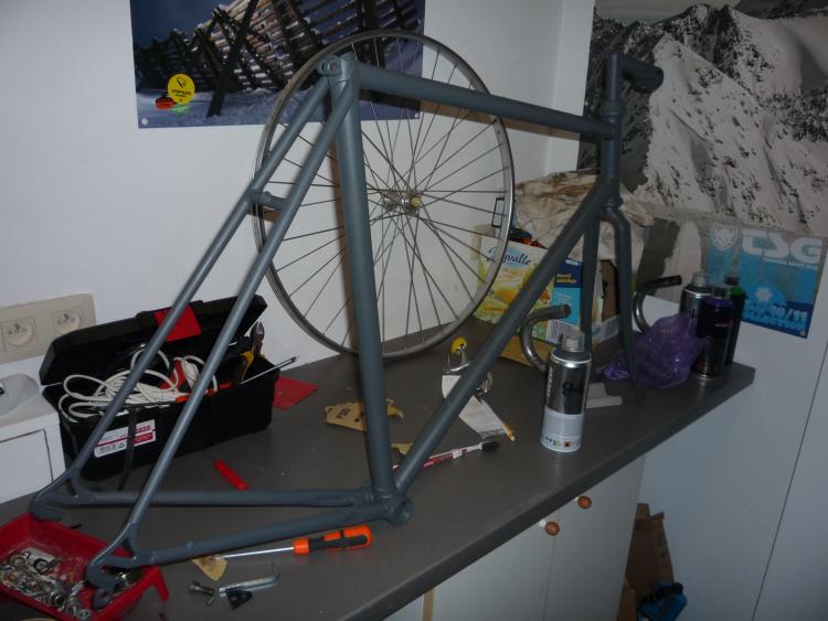 TheBlackNext Posté(e) le 21 février 2013 Signaler Posté(e) le 21 février 2013 Salut les gars, la suite de mon single speed Fourche et potence montée sur le cadre, au final ça passe nickel Montage à blanc Et peinture !! Un gris montana "icarus grey" Certain vont me prendre pour un fou parce que j'ai peins une fourche chromée .. lol mais bon je voulais pas d'un truc ordinaire comme je vois partout à Bruxelles .. Pour la suite, jantes noires, guidon noir, selle noire. Je dois encore acheter axe et pedalier + roue libre pour l'arrière. y aura 1 frein campagnolo à l'avant, je dois encore acheter un petit levier. 1