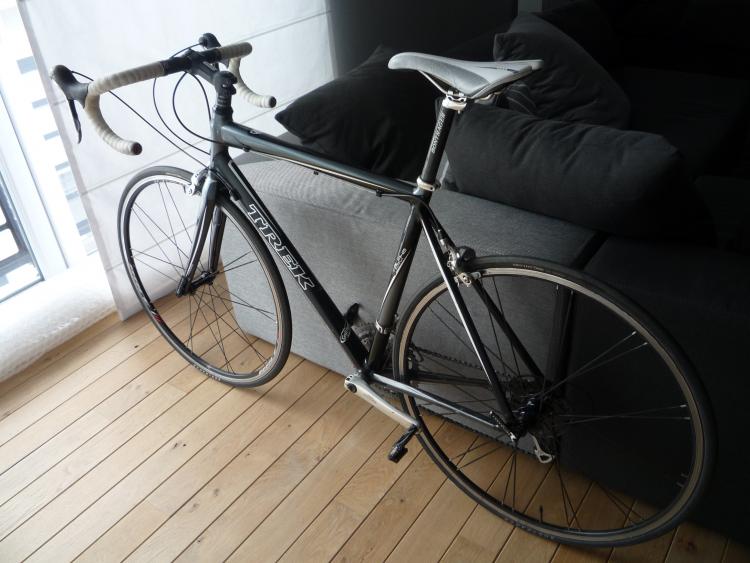 TheBlackNext Posté(e) le 24 mars 2013 Signaler Posté(e) le 24 mars 2013 La suite du singlespeed, rien de neuf, juste pédales et straps, weekend prochain normalement je fais monter pédalier ! Sinon mon vieux VTT scoot Summit repeint et mis en VTC ce vélo à 18 ans .. lol Tout STX + fourche manitou, à l'époque un bon vélo :P MAIS grosse news, nouveau vélo !! Un course, TREK 1,9 cadre alu en full Ultegra (vélo d'occasion) Hâte qu'il fasse beau pour aller rouler !! Au programme dessus, changer guidoline pour une noire et peut-être changer la selle pour une noire aussi !! Pour le reste il y a quelques griffes mais il est nickel ! 1