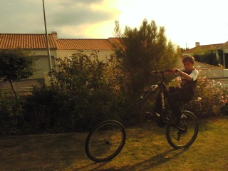 GoProto 13 Posté(e) le 20 février 2014 Signaler Posté(e) le 20 février 2014 (modifié) Salut tout le monde ! :) Petite contribution, mon Giant XTC 3 acheté entre 1 000 et 1 500 euros il y a de ça quelques années. Freins à disque hydrolique AV et AR. Utilisé pour Cross Country et stunt : Mon Giant Boulder, uniquement stunt avec ma tête de bébé :D : Un vieux vélo que j'avais quand j'étais gosse, il a finit dans un poteau à 30 ou 40km/h en pleine descente, mon pote qui était dessus regardait derrière lui dans le virage, il portait un T-shirt avec un logo Adidas brodé, avec le choc, il a eu la trace du logo sur la peau pendant deux jours. :D2 La fourche était pliée du coup on s'est amusé avec. Actuellement avec une roue avant de trottinette électrique, guidon BMX made in grande surface et toujours la fourche pliée... enfin... à l'arrière. La fouche arrière était prévue pour attacher "la chariotte du diable", le reste de la trotinette, mais trop compliqué pour nous, on a donc abandonné. Oui, il faut rouler tout droit, tourner tout doucement et non on ne peut pas se pencher, même les pédales au niveau de l'axe du pédalier ça frotte. :winner: Nous avions de bons goûts à l'époque ! :siffle: :ninja: Modifié le 20 février 2014 par GoProto 13