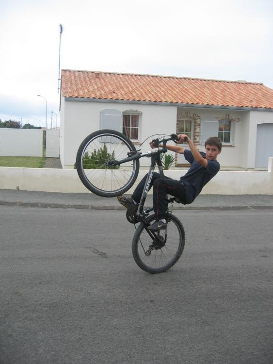 Matt65 Posté(e) le 19 mars 2014 Signaler Posté(e) le 19 mars 2014 Salut tout le monde ! :) Petite contribution, mon Giant XTC 3 acheté entre 1 000 et 1 500 euros il y a de ça quelques années. Freins à disque hydrolique AV et AR. Utilisé pour Cross Country et stunt : Mon Giant Boulder, uniquement stunt avec ma tête de bébé :D : Un vieux vélo que j'avais quand j'étais gosse, il a finit dans un poteau à 30 ou 40km/h en pleine descente, mon pote qui était dessus regardait derrière lui dans le virage, il portait un T-shirt avec un logo Adidas brodé, avec le choc, il a eu la trace du logo sur la peau pendant deux jours. :D2 La fourche était pliée du coup on s'est amusé avec. Actuellement avec une roue avant de trottinette électrique, guidon BMX made in grande surface et toujours la fourche pliée... enfin... à l'arrière. La fouche arrière était prévue pour attacher "la chariotte du diable", le reste de la trotinette, mais trop compliqué pour nous, on a donc abandonné. Oui, il faut rouler tout droit, tourner tout doucement et non on ne peut pas se pencher, même les pédales au niveau de l'axe du pédalier ça frotte. :winner: Nous avions de bons goûts à l'époque ! :siffle: :ninja: Mouais c'est pas ce que j'appelle du stunt ça, ça fait plus kéké casse couille qui fait des roue arrière Ça c'est du stunt :