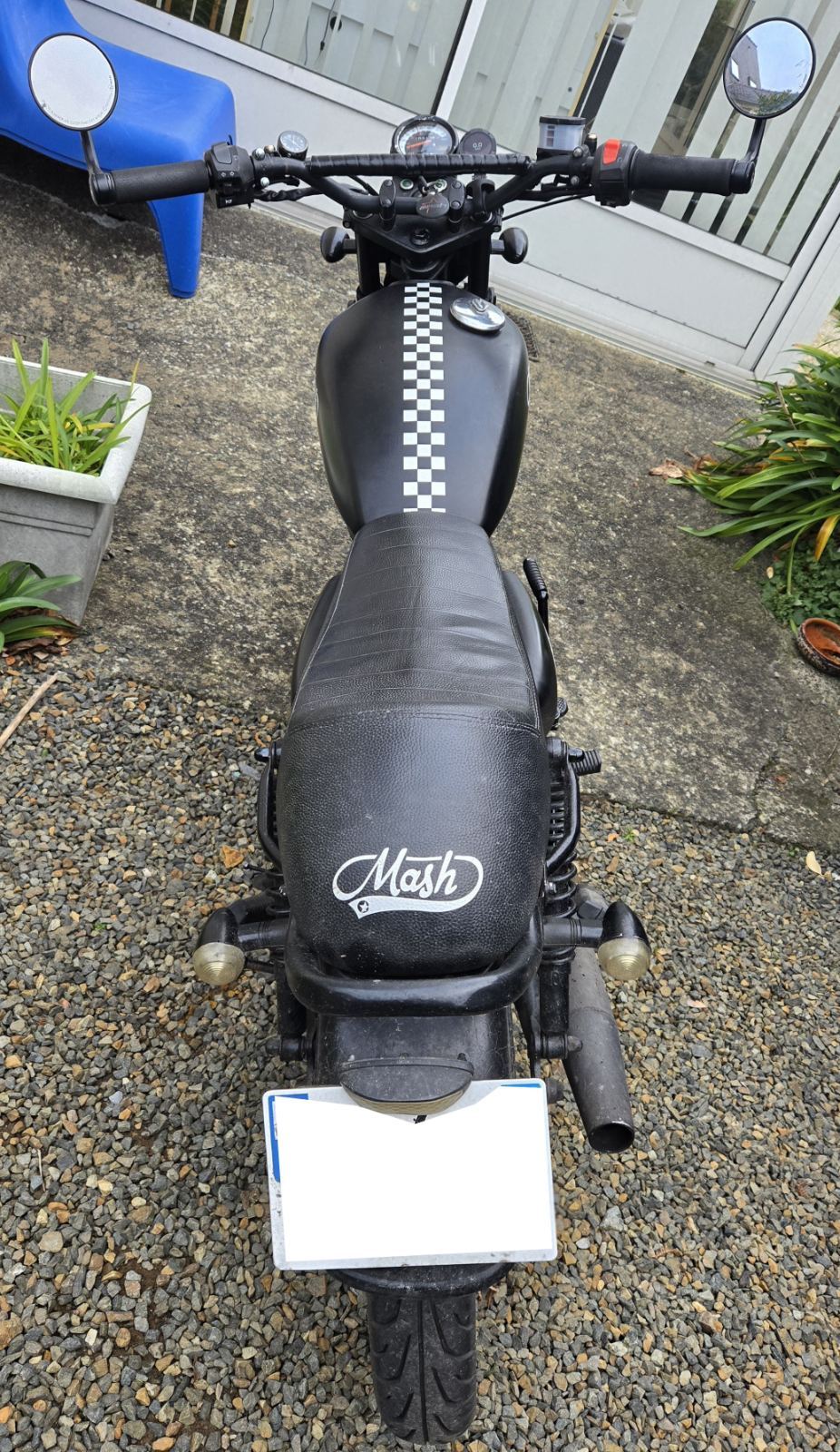 Un des avantages de Mash comme pour Royal Enfield qui fait partie du même groupe ( le groupe SIMA ), c'est que beaucoup de pièces sont communes pour les modèles de la même marque, même si ce n'est pas la même cylindrée ( par exemple le cadre de la fifty 50cc est le même que celui de la seventy 125cc et leurs réservoirs sont pratiquement les mêmes, ce qui fait penser a tout le monde que la fifty 50cc est une 125cc, même les motards que tu croise sur la route et qui te font un signe de la main. ;)).