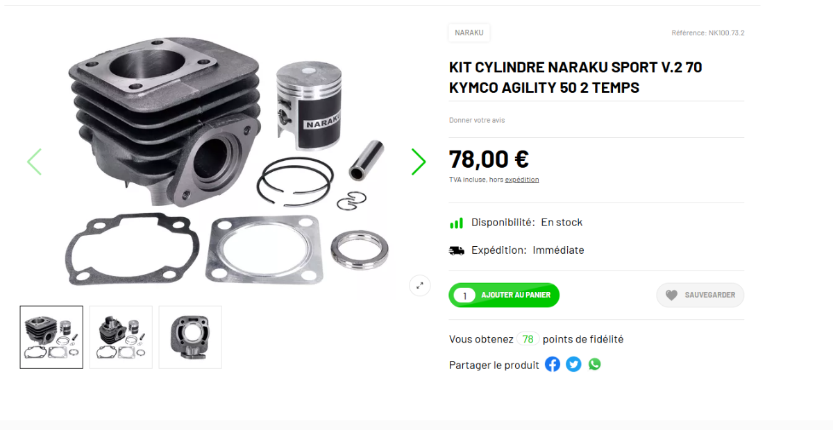 je voudrais voire que me proposer comme kit 70 ? car je regarde mes je ne trouve même pas le vilebrequin pour kymco naked