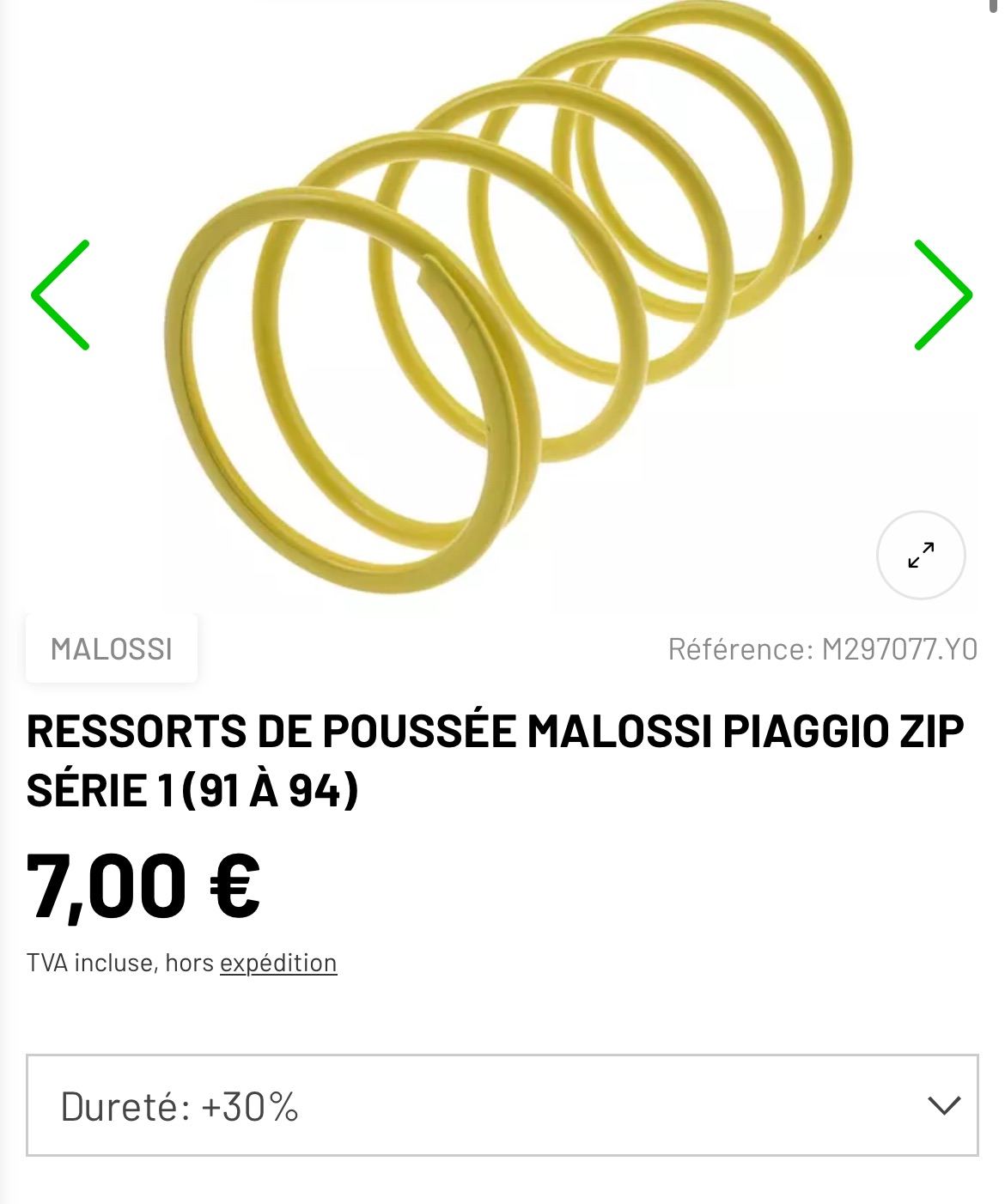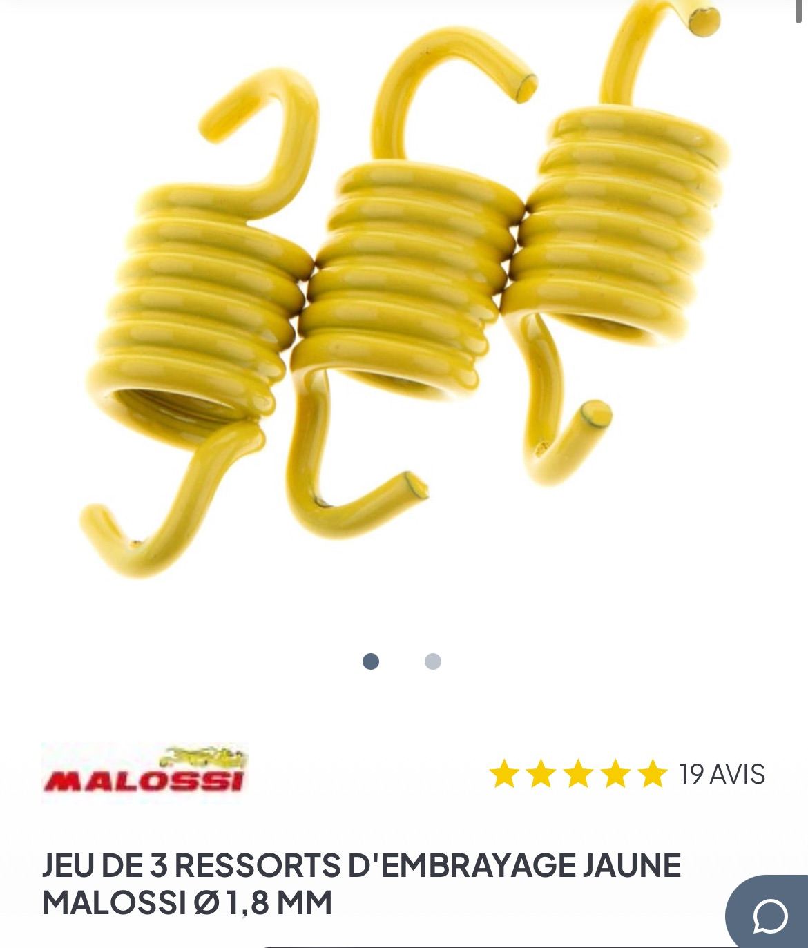 Alain Posté(e) il y a 29 minutes Signaler Posté(e) il y a 29 minutes (modifié) COmme je le pensais, ce n'est pas bon. Les ressorts de poussée de Piaggio avant 1998 n'ont pas la même dureté que ceux pour les modèles plus récents. Pour les ressorts d'embrayage Malossi jaunes, il y a plusieurs références, mais de toute façon ils ne s'accordent pas avec un embrayage Polini. Tu n'as pas eu de ressorts avec le variateur et l'embrayage? Modifié il y a 25 minutes par Alain